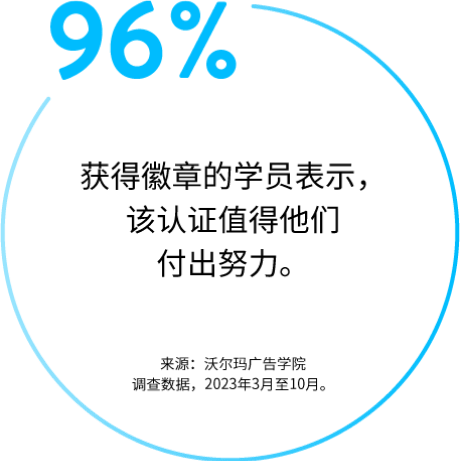 学习者完成课程和知识测试,或者直接参与最终的限时评估并得分80%以上,即可获得徽章。